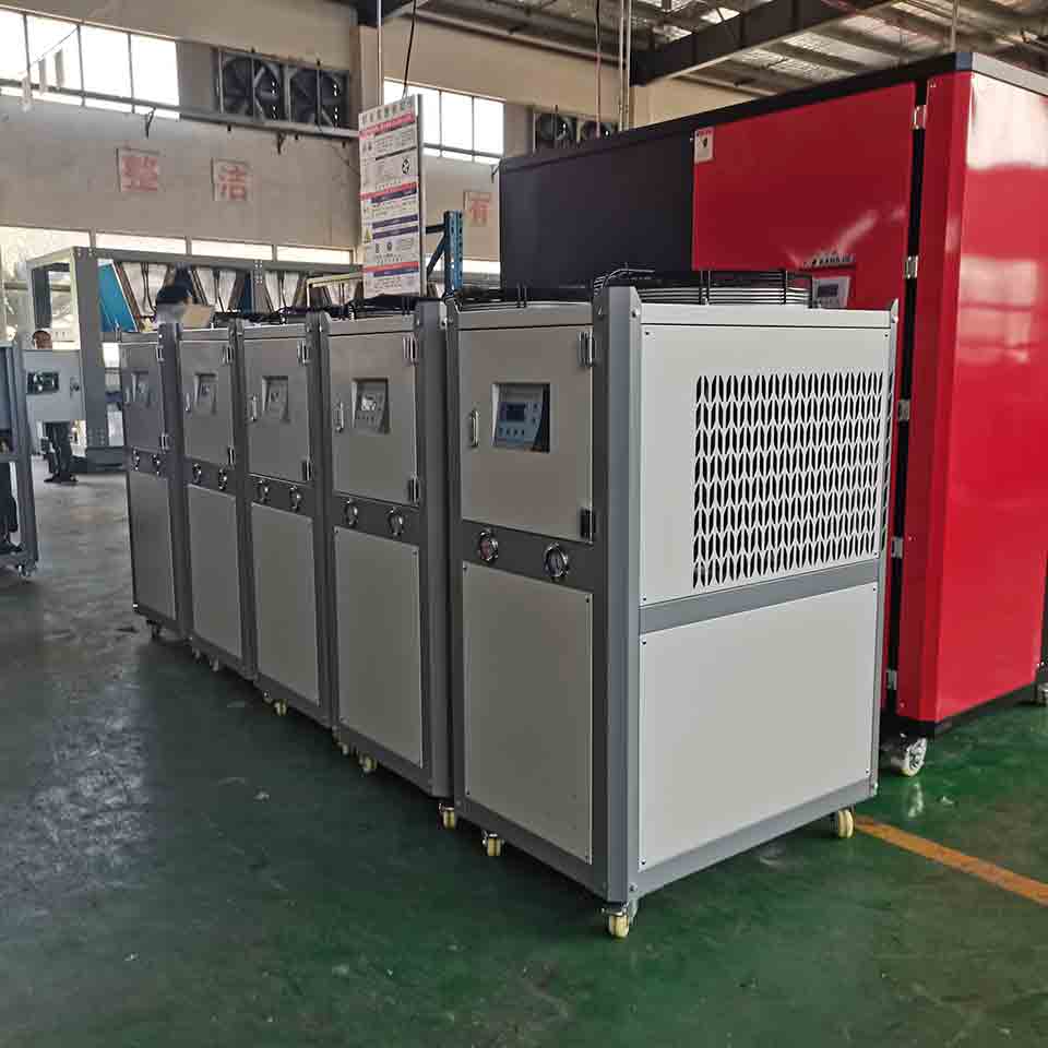 工業(yè)制冷機組是以壓縮機提供動力的溫度控制設(shè)備。根據(jù)冷卻方式分有風(fēng)冷式、水冷式、蒸發(fā)式等。適用于工業(yè)或?qū)嶒灥刃枰獪囟瓤刂频男袠I(yè)或工藝。