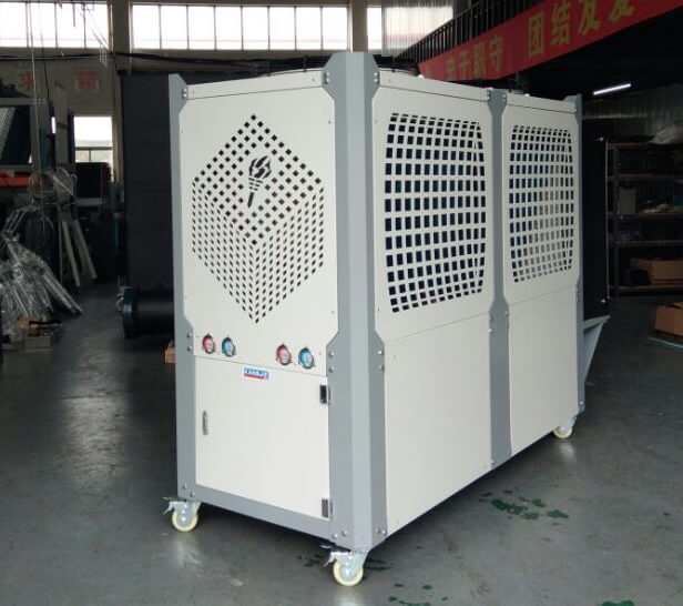 工業箱式制冷機組是一種水冷卻設備,制冷機組是一種能提供恒溫、恒流、恒壓的冷卻水設備。制冷機組工作原理是先向機內水箱注入一定量的水,通過冷水機制冷系統將水冷卻,再由水泵將低溫冷卻水送入需冷卻的設備,冷水機冷凍水將熱量帶走后溫度升高再回流到水箱,達到冷卻的作用。冷卻水溫可根據要求自動調節,長期使用可節約用水。因此,制冷機組是一種標準的節能設備。