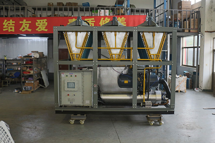 3、風冷式反應釜水循環(huán)工業(yè)制冷機組,通過風扇以空氣為冷凝方式的控溫設備,有箱式和螺桿式;